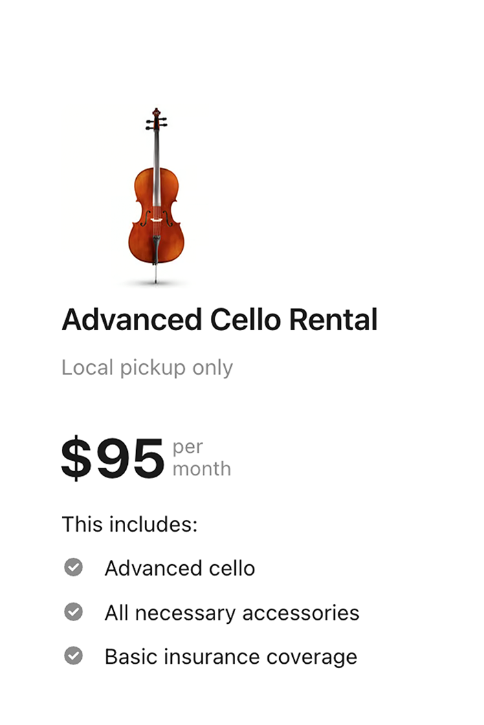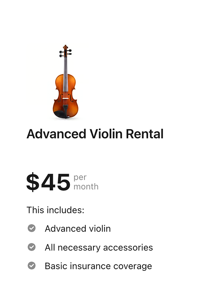 Currently, we're only offering rentals to customers in South Florida. We're proud to be servicing Miami-Dade, Broward and Palm Beach counties with the most affordable rental program for string instruments in the region.