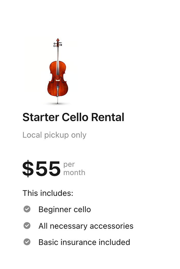 Every Fiddlershop cello rental comes with the following items.