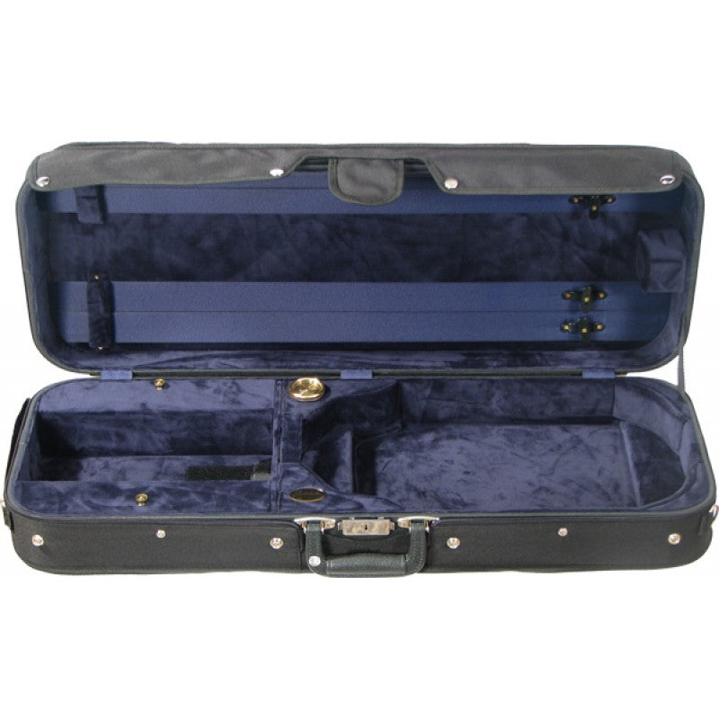 This is a very spacious case, yet snug at all the right places. This case delivers the qualities of a luxury case at an affordable price. It is very strong, and only weighs 7 pounds. The interior material is velour, so it feels very smooth to the touch. This case has been a very popular choice among aspiring violists.
