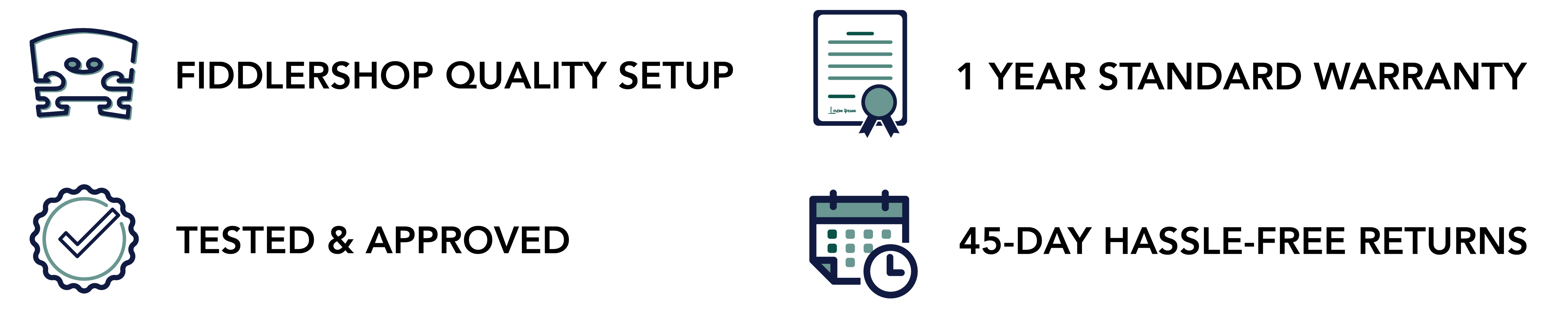 This electric violin is set up and tested in Fiddlershop's Florida workshop and will arrive ready to play out of the box.